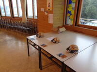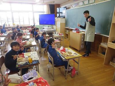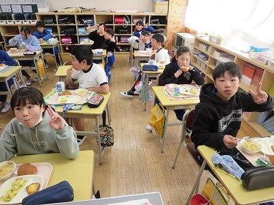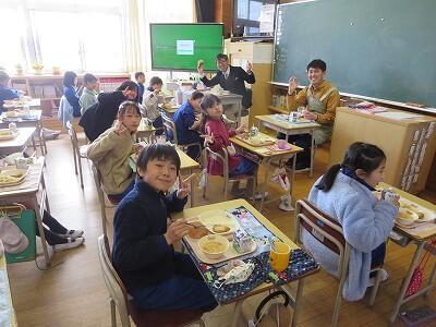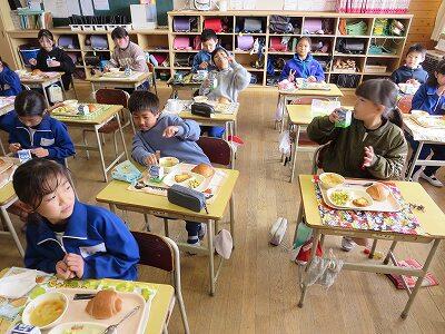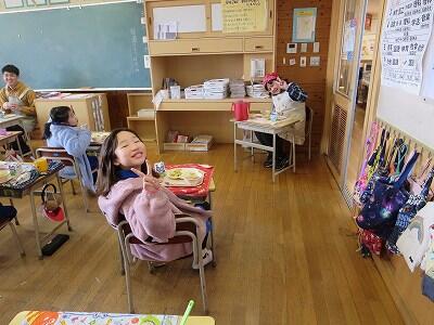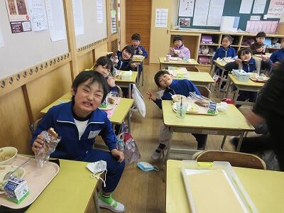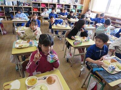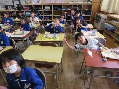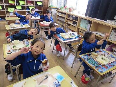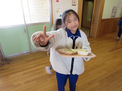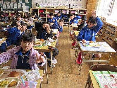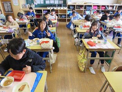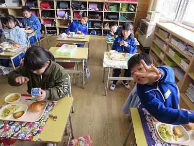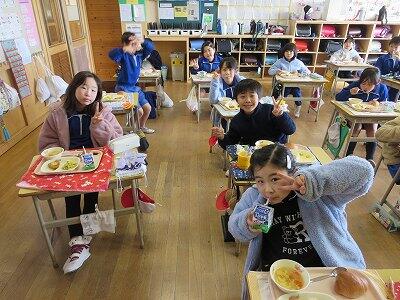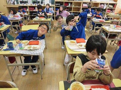 1組から順番に6~7人ずつ、そこに校長が加わり、ランチルームに一堂に会し、楽しくおしゃべりをしながら一緒に給食をいただきます。今日がその「6組目」となりました。