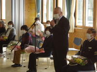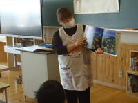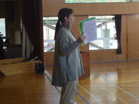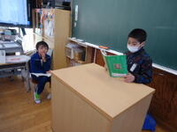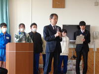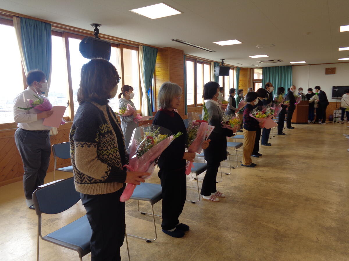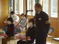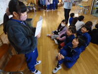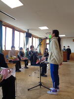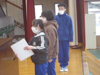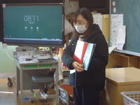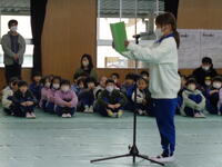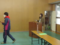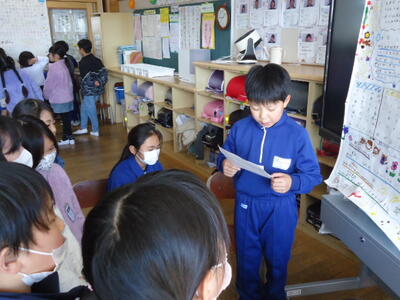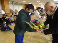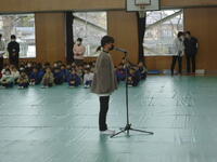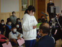 一年間お世話になった交通指導員さん、スクールガードさん、読み聞かせボランティアさん、図書ボランティアさんに感謝の気持ちを伝える。