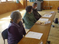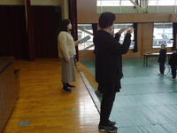 ピーンと空気が張りつめ、静かな雰囲気の中、6年生児童は真剣に練習に臨んでいました。