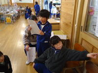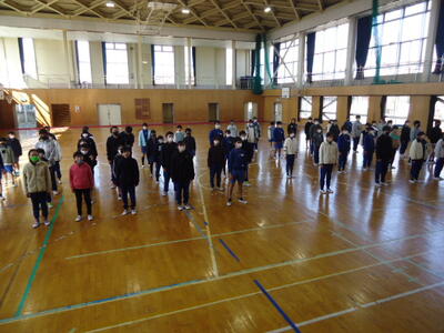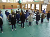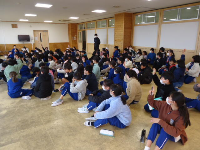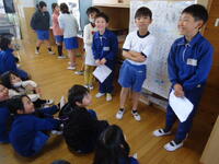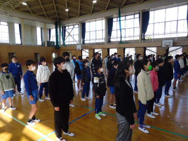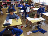 4年1組・2組ともに体育館において、明日行われる「6年生を送る会」の練習に取り組んでいました。全児童一堂に会し、「6年生の卒業」を祝います。楽しい思い出をたくさん作って欲しいと思います(#^.^#)。