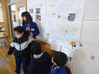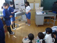 3年生の「総合的な学習」の一環として、今年度体験した「真岡市自然教育センター:宿泊学習」について、来年度実施予定の2年生に対し、その内容や楽しかった思い出を、絵や写真を使い、分かりやすく説明・発表していました。