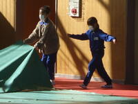 本日、5~6校時にかけて、5年生児童による「卒業式会場設営」を行いまいました。