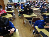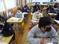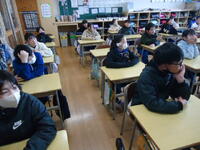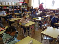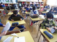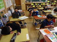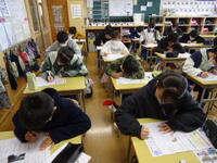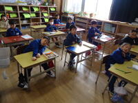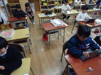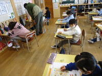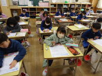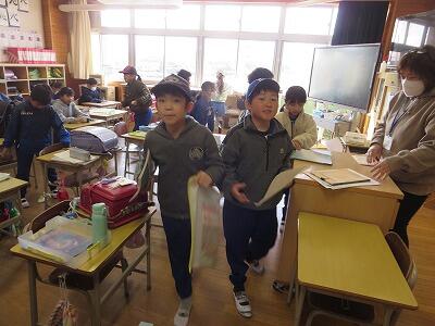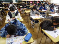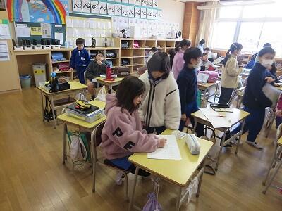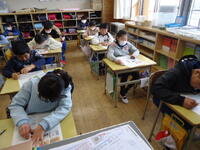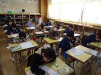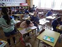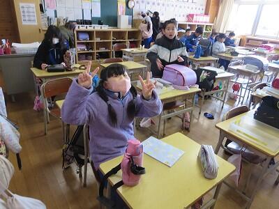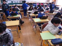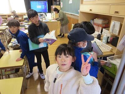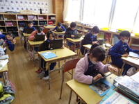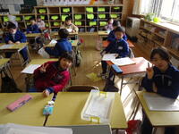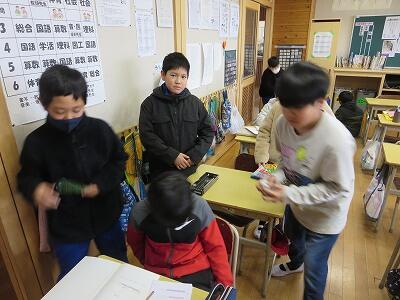 各クラスにお邪魔してみると、担任から「通知表・あゆみ」を説明とともに手渡されているクラス、「春休みの生活」等について最終確認をしているクラス、そして笑顔とともに「お楽しみ会」を楽しんでいるクラス等々・・・。そのクラスなりの「今年度の総まとめ」を行っていました(#^.^#)。