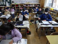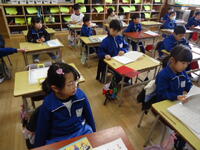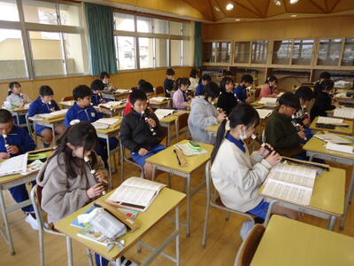 5年2組では、国歌「君が代」の練習に、大変熱心に取り組んでいました。