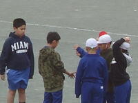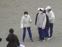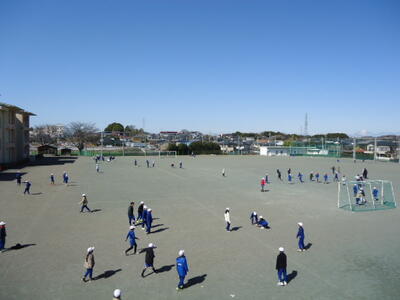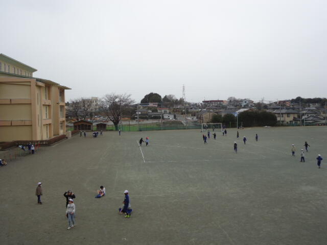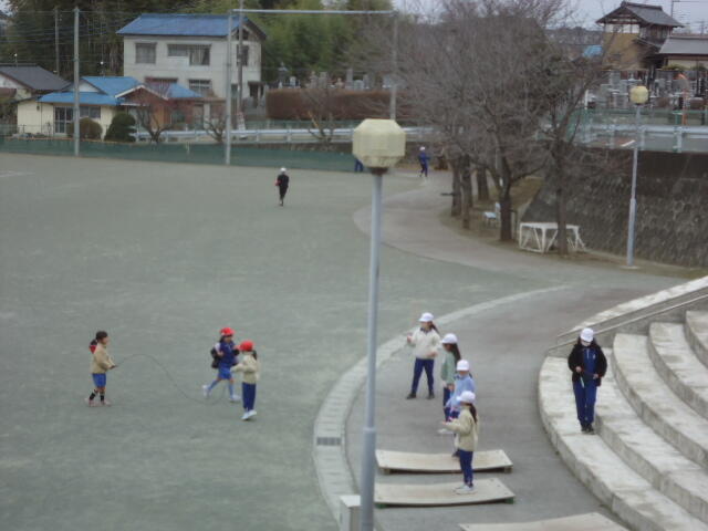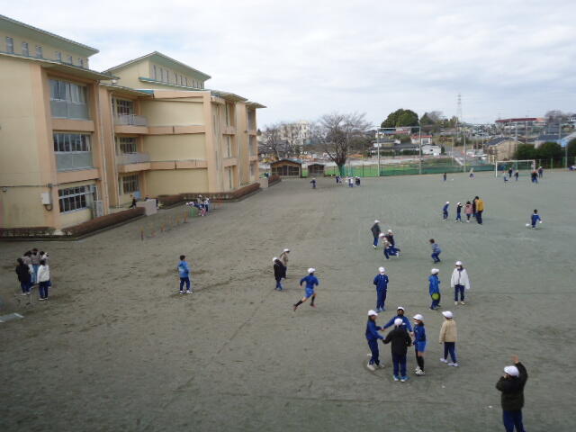 ★寒さのせいか、今日も普段より校庭に出て来る児童が少ないように感じます(;´∀`)。それでも校庭では、縄跳びやサッカー等、元気いっぱい遊び回っている児童の姿を見ることができました。!(^^)!
