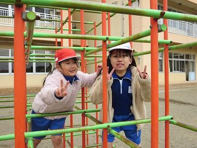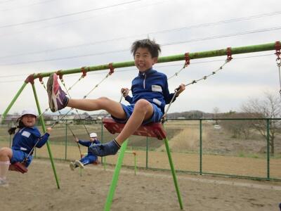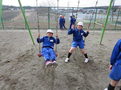 ★校庭では1~5年生の子供たちが楽しそうに遊び回っています。肌寒さを感じる陽気ですが、「笑顔と元気いっぱいの笑い声」に包まれていました!(^^)!