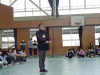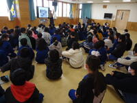 次に、担当の教諭から「今年度を振り返って」・「春休みの過ごし方」等について、3年1組の数名の児童のお手伝いも加わった楽しく分かりやすい説明を、子供たちは興味津々、笑顔とともにしっかりと耳を傾けていました。