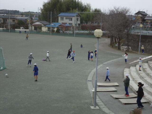 ★昨日、6年生が卒業し、校庭では1~5年生の子供たちが楽しそうに遊び回っています。曇り空に加え、肌寒さを感じる陽気ですが、「笑顔と元気いっぱいの笑い声」に包まれていました!(^^)!