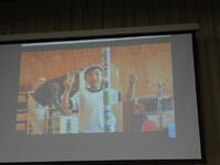 人数の関係上、多目的室には6年生児童、その他の学年については会場と教室をオンラインで結び、映像での参加としました。