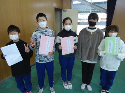 最後に「令和5年度 第3学期終業式」を行いました。各学年の代表児童に「修了証書」と「通知表・あゆみ」を手渡しました。全員がしっかりとした態度で式に臨むことができました。