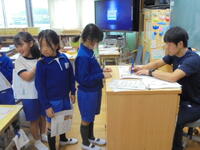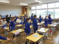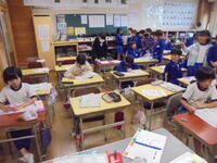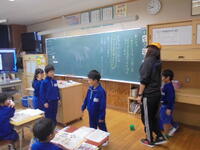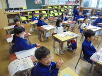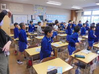 ★1年1組「道徳」では、「あいさつ」の大切さについて、動作を交えながらみんなで考えていました。
