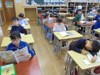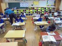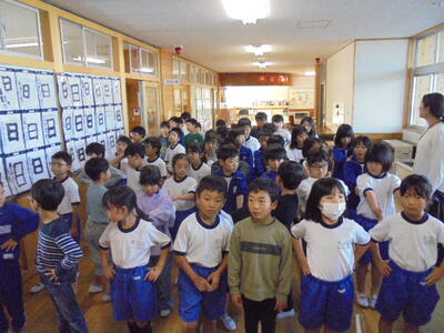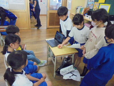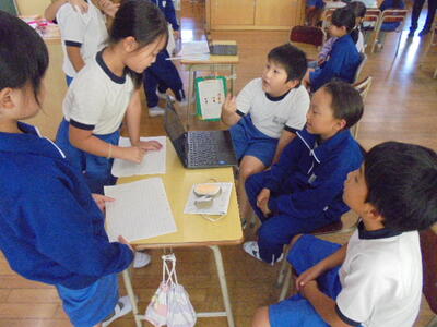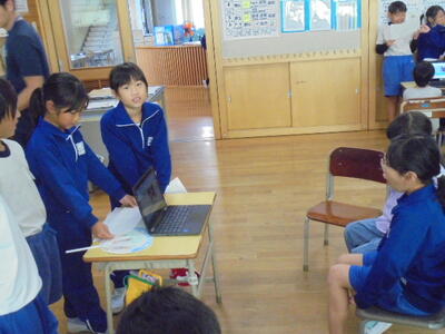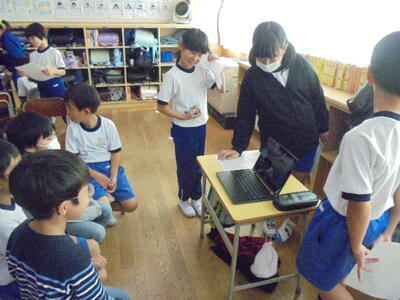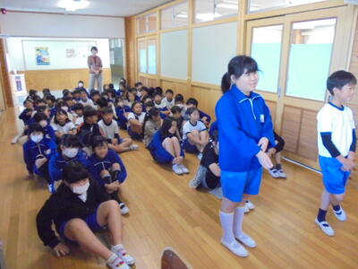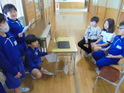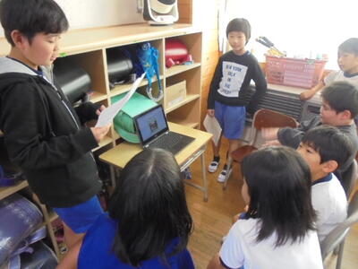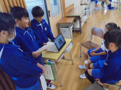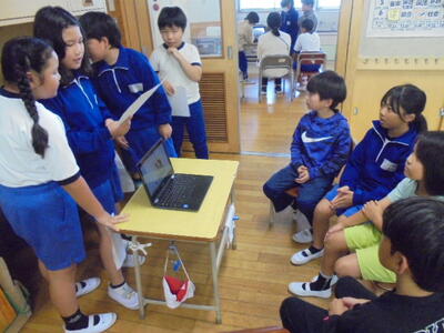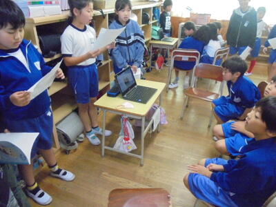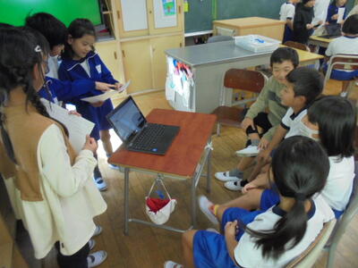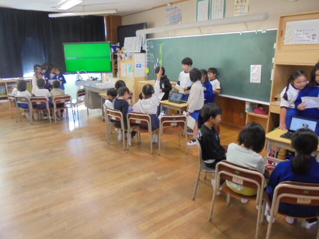 3年生児童が、以前実施した「宿泊学習:自然教室」について、楽しかったことや思い出に残ったこと等を、2年生児童に対し、分かりやすく説明をしていました。