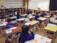 ★5年1組では、気持ちをシャキっとしてから授業に臨めるよう、「立腰」を行っていました。大変姿勢が良いですね(#^.^#)。