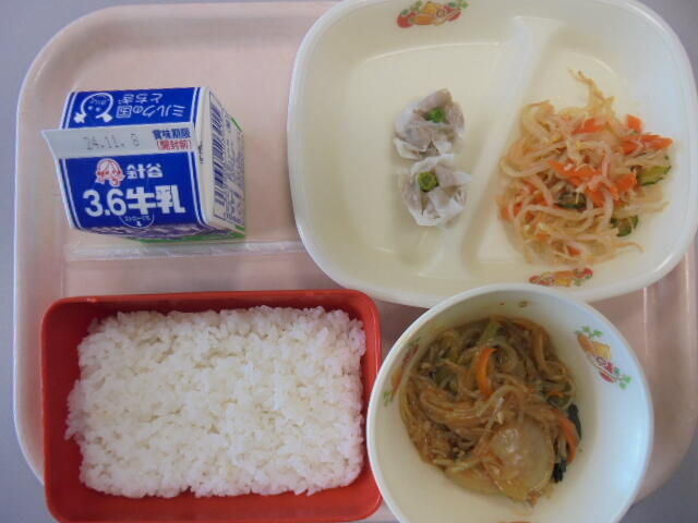 ごはん 牛乳 シューマイ② チキンときゅうりの中華和え マーボー春雨