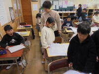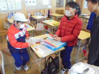 ★通知表を二人で確認しながら、2学期に頑張ったことの説明や、3学期に向けてのアドバイス等とともに、担任から児童一人一人に手渡されていました(#^.^#)。