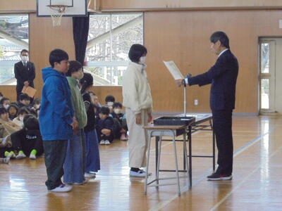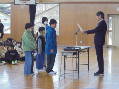 「令和6年度 第2学期終業式」では、校長の話の後、代表児童による作文発表、そして児童指導担当の教諭から「2学期を振り返って」・「冬休みの過ごし方」等の説明及び代表児童によるスローガンの発表等、静かな雰囲気の中で式が進行しました。子供たちは大変しっかりとした態度で式に臨むことができました。