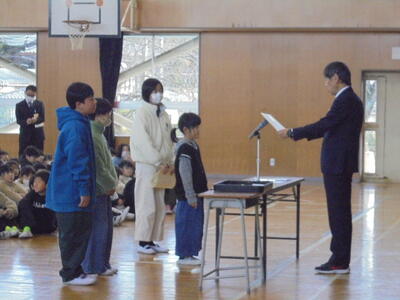本日、第2学期終業式の校長の話の中で、子供たちに対し【①2学期に頑張ったこと ②冬休みについて ③感謝の気持ちを持って】等についての話をしました。今学期の子供たちの学校生活を思い浮かべながら、主に今学期に伸びたことや頑張ったこと等を中心に話しました。御家庭におかれましても、本日担任から一人一人のお子様に手渡された通知表を御覧になりながら、御一緒に今学期を振り返ってみるとともに、3学期に向けて頑張ること等について話し合っていただけると、大変有り難く思います。