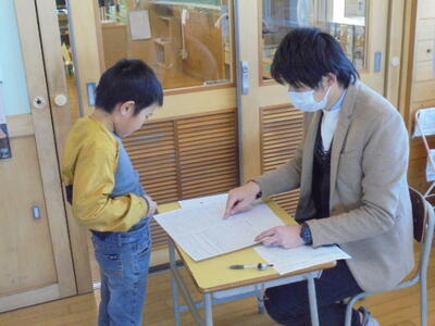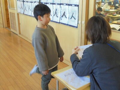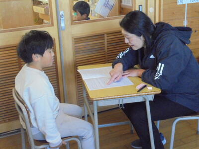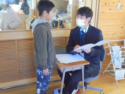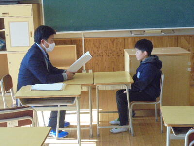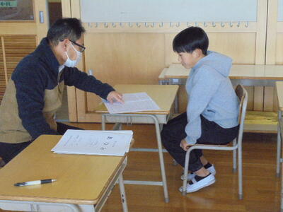 ★通知表を二人で確認しながら、2学期に頑張ったことの説明や、3学期に向けてのアドバイス等とともに、担任から児童一人一人に手渡されていました(#^.^#)。