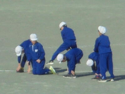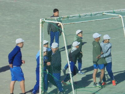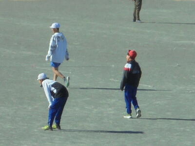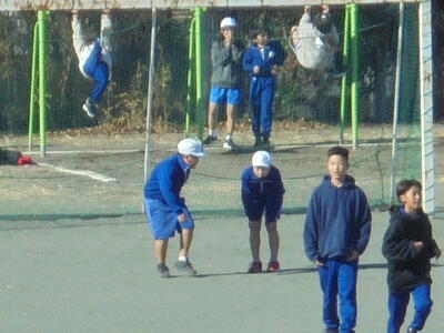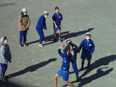 ★時折、冷たい風が吹き抜ける校庭で、6年1組の子供たちが、元気に体育の授業に臨んでいました(#^.^#)。