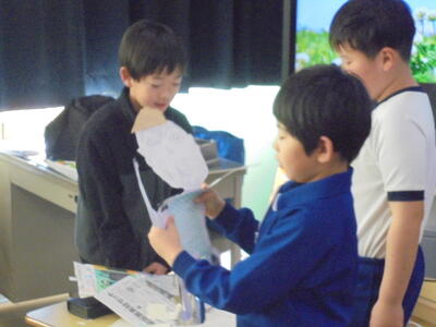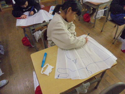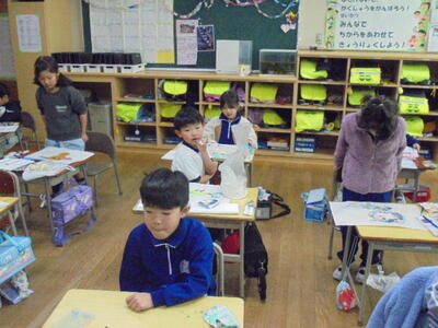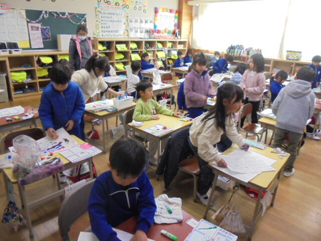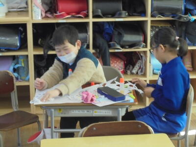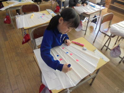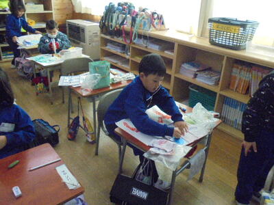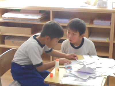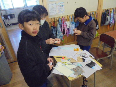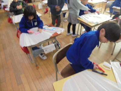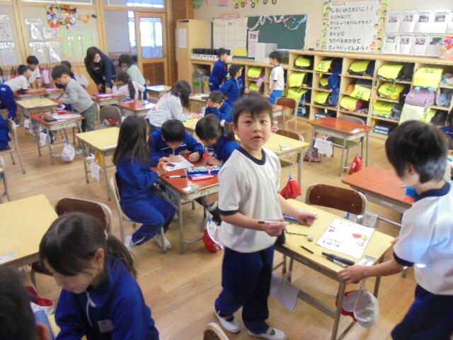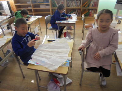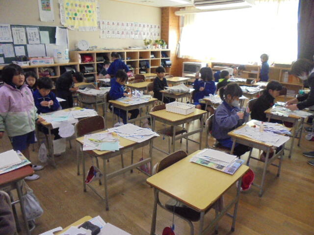 ★1年1組「生活科」では、来年度新入生にプレゼントするための「折り紙作品」作りに取り組んでいました。