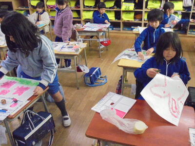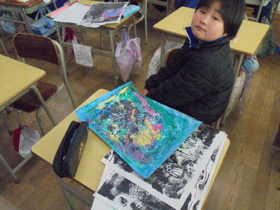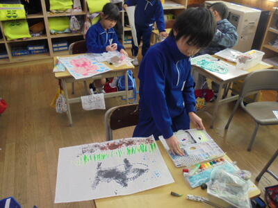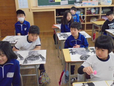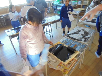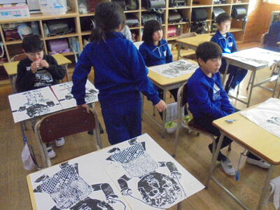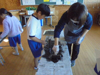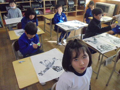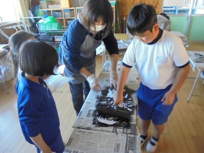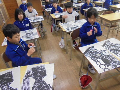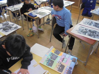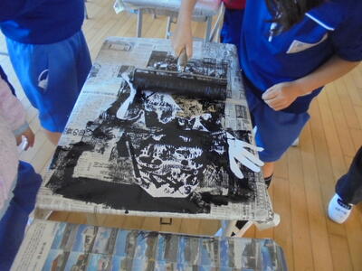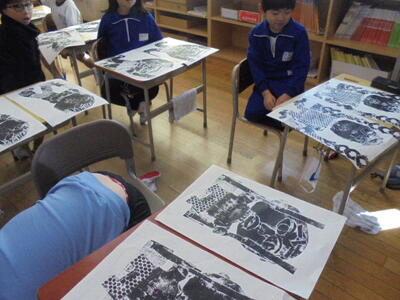2年2組「版画作成」頑張っています(#^.^#)(1/15)