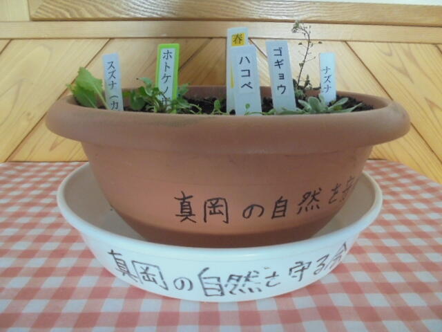 「真岡の自然を守る会」の方が来校され、「春の七草」の寄せ植えを提供してくださいました。