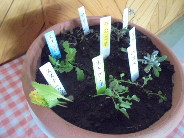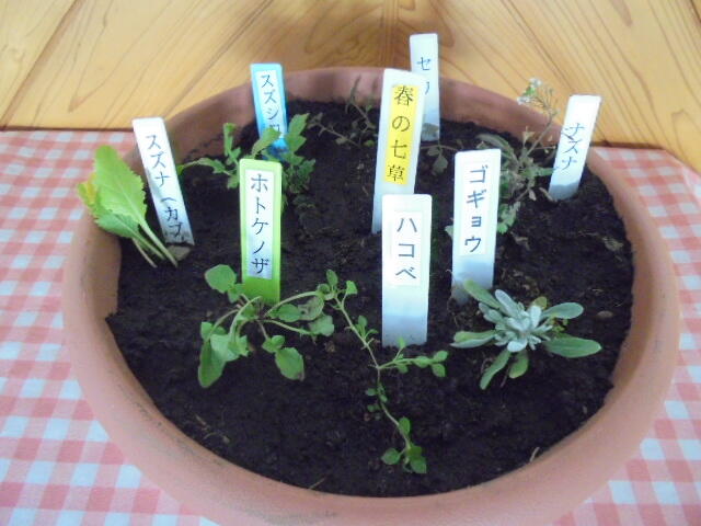 ★児童の皆さん、「春の七草」を鑑賞しながら、季節感を大いに味わってくださいね(#^.^#)。