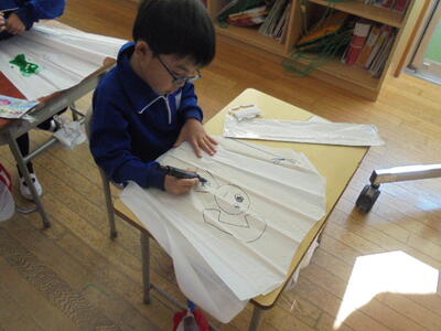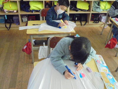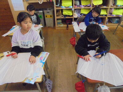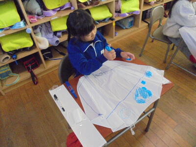 ★子供たちは、楽しそうに「ぐにゃぐにゃだこ」を作っている真っ最中でした。きっと、大空高く舞い上がることでしょう(#^.^#)❣❣