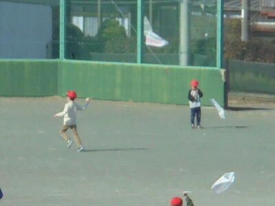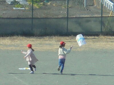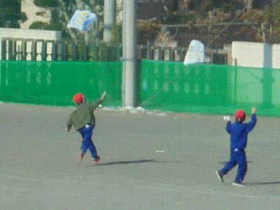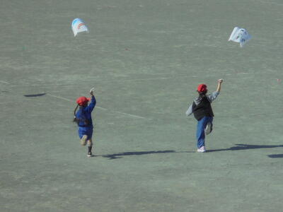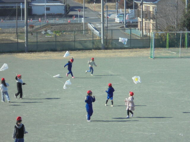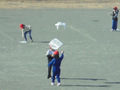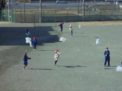 ★「にのみや保育園」の園児の皆さんが、本校1年生と一緒に、「凧あげ」を楽しみました(#^.^#)❣❣