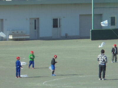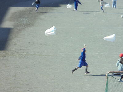★前の時間に作り上げた「ぐにゃぐにゃだこ」を、子供たちは楽しそうに、そして夢中になって飛ばしていました。たくさんのたこが、大空高く舞い上がっていました(#^.^#)❣❣