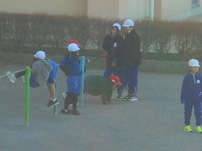 ★今日も朝からすっきりと晴れ渡る快晴に恵まれました。「お日様」はしっかりと顔を出しているのですが、昨日よりもいっそう強く風の冷たさを感じます(;^ω^)。それでも「子供は風の子❣❣」ですね。多くの子供たちが校庭に飛び出してきて、楽しそうに遊び回っていました。