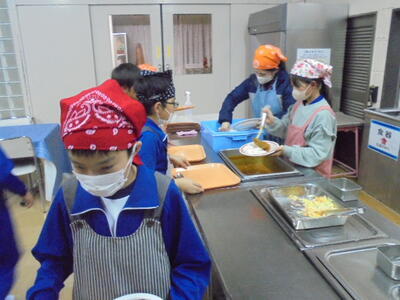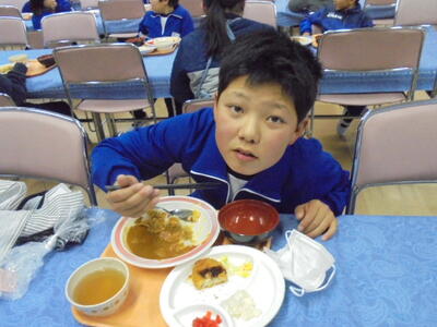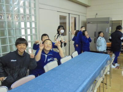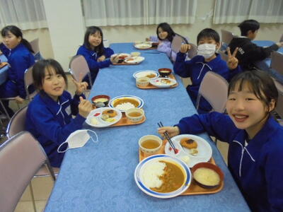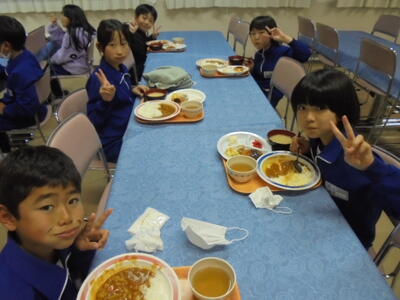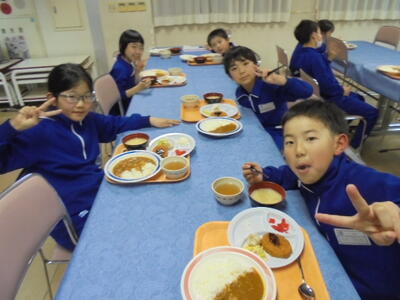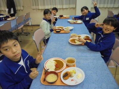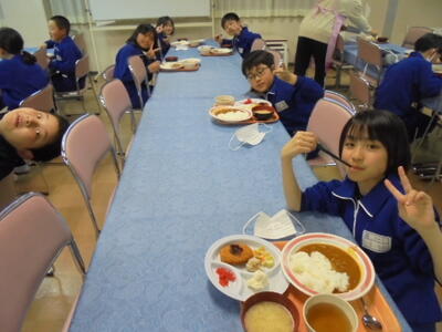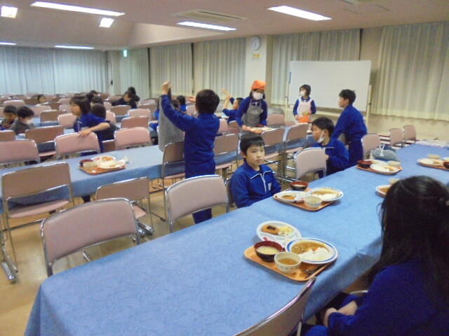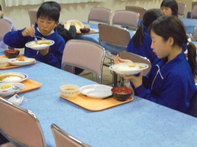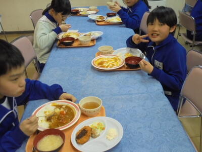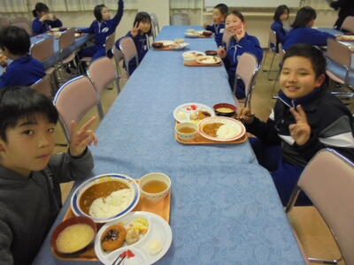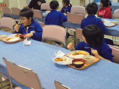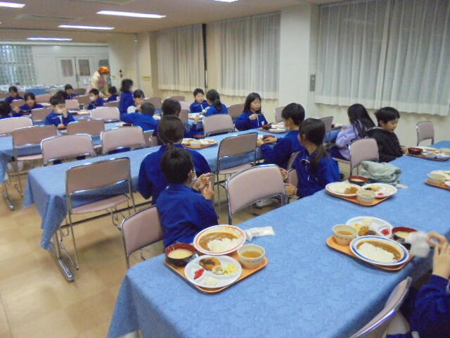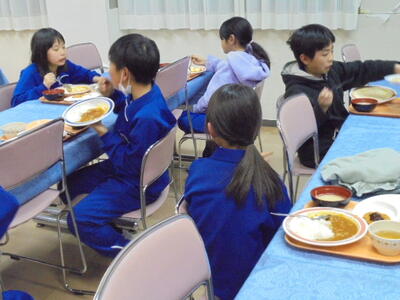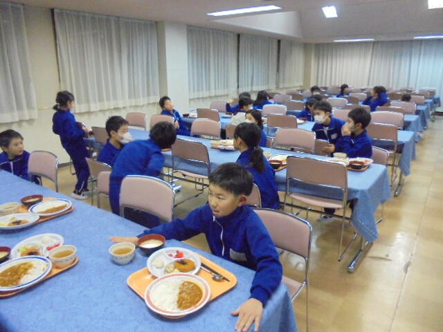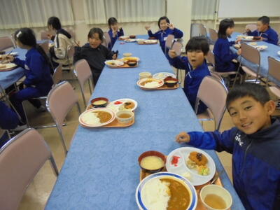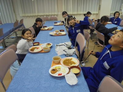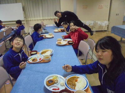 4年生「自然教室(宿泊学習)」の、夕食(二日目)の様子です。