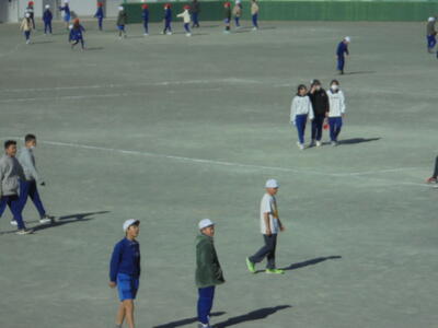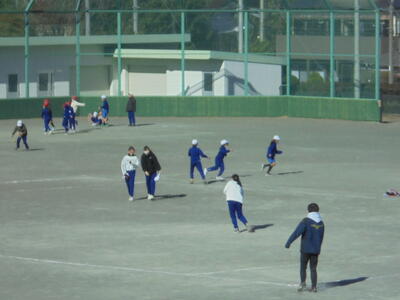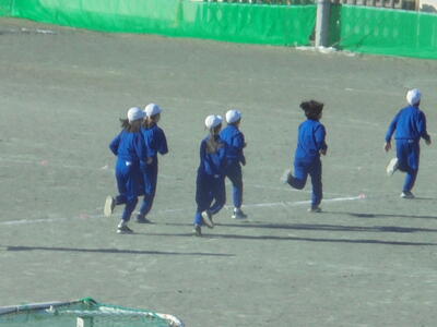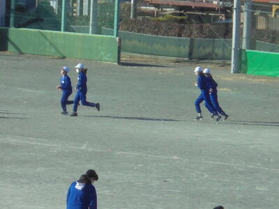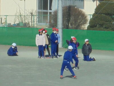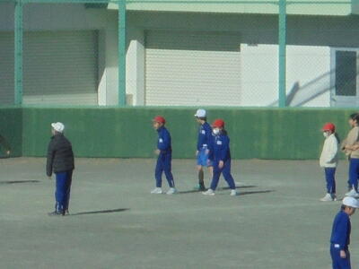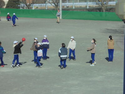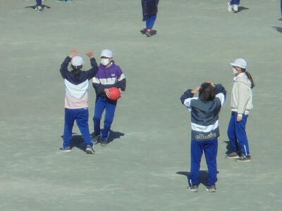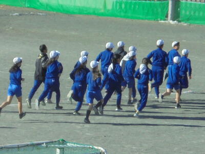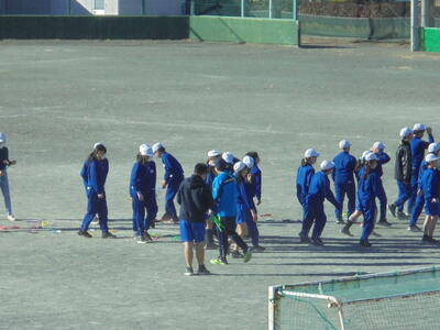 ★時折、冷たい風が吹き抜ける校庭で、6年1組の子供たちが、元気に体育の授業に臨んでいました(#^.^#)。