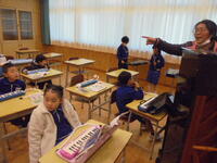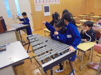 ★1年2組「音楽」では、鉄琴や鍵盤ハーモニカの音の出し方の練習を行っていました。