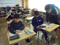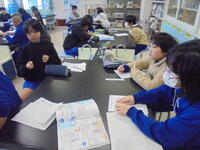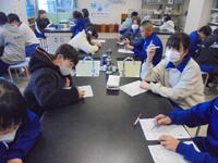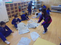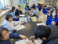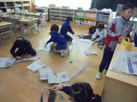 ★4年1組「図工」では、新聞紙を細く長く巻きながら、棒状に作り上げていました。