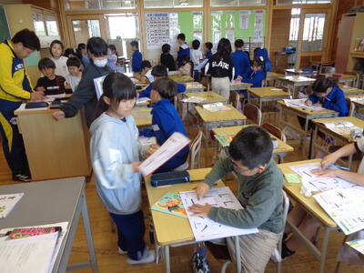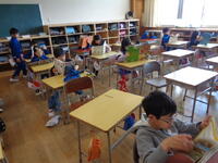 本日、5~6校時にかけて、新6年生児童による「入学式会場設営」「1年生教室準備」を行いまいました。