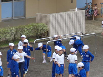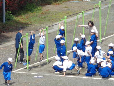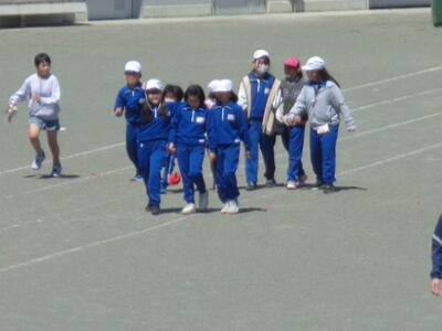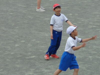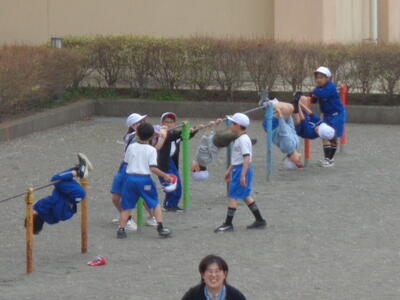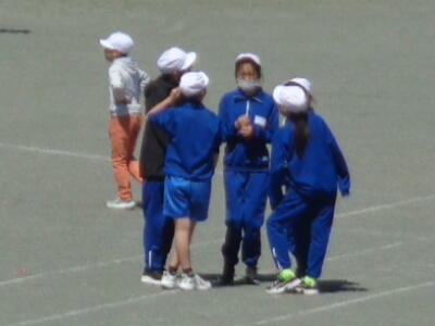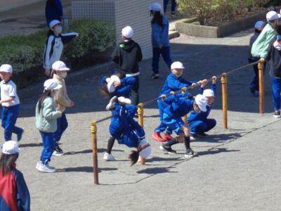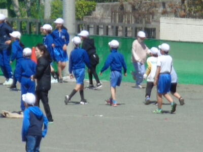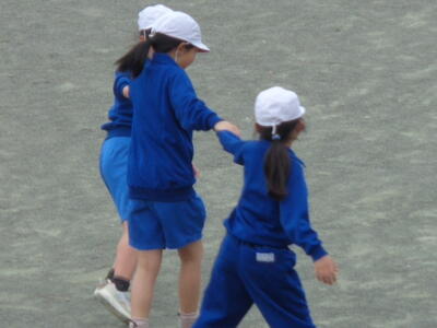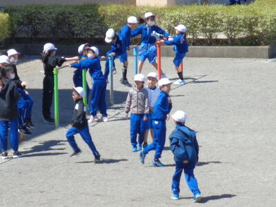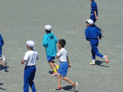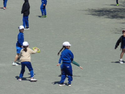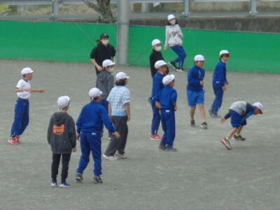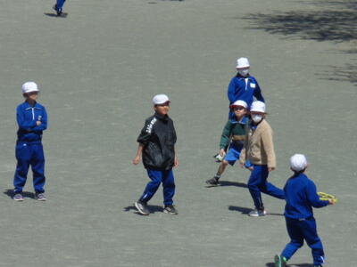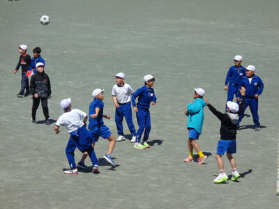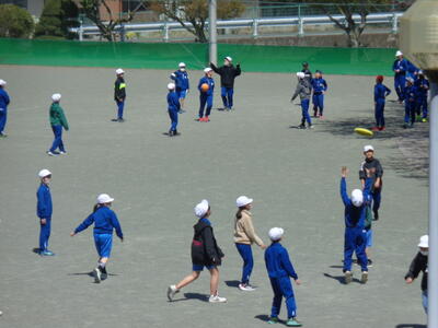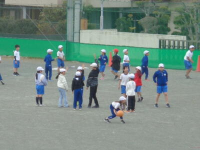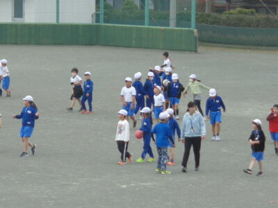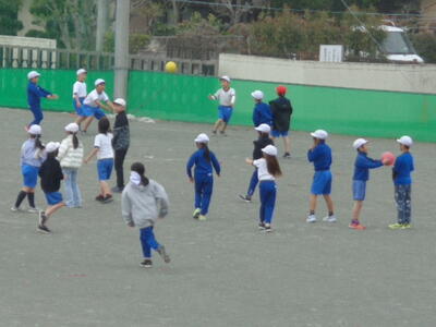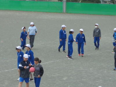 校庭で、2年生児童が元気に「合同体育」に取り組んでいました。