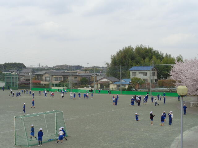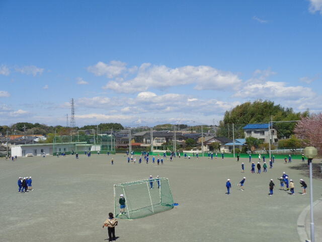★爽やかな陽気と満開の「桜」に誘われて、とても多くの子供たちが校庭に出てきて、笑顔と笑い声を携えながら楽しそうに遊び回っていました(#^.^#)。