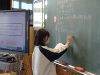 ★5年2組「社会」では、昨日の引き続き「地球儀」を使って学習に取り組んでいました。