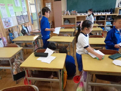 本日の6校時、5・6年児童による「委員会活動(第1回目)」を行いました。各委員会3枚ずつ、上から「給食」「厚生」「放送」「体育」「企画」「図書」「保健・安全」「環境・美化」の順に掲載しました。