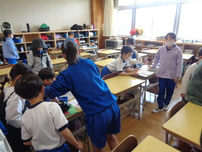 ★3・4年生「身体計測」では、身長・体重・視力・聴力等の検査を行いました。