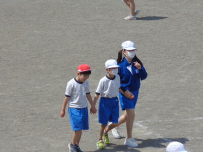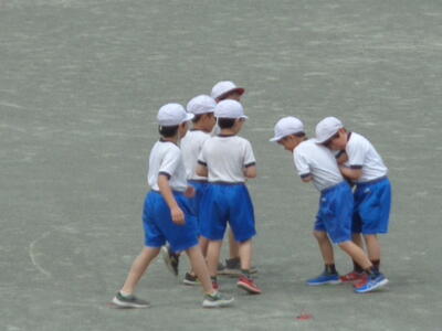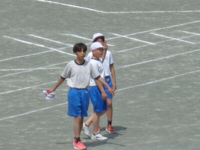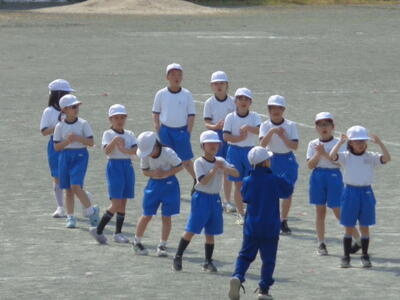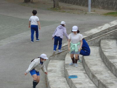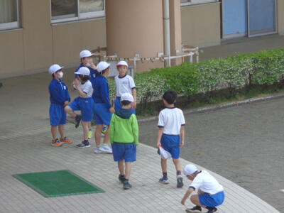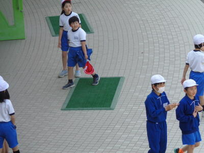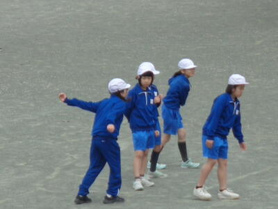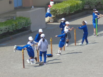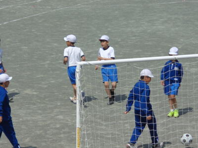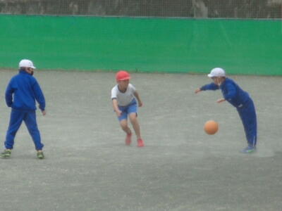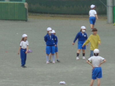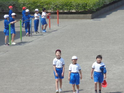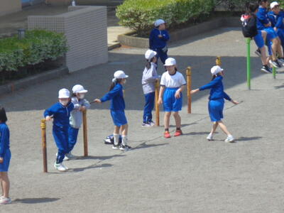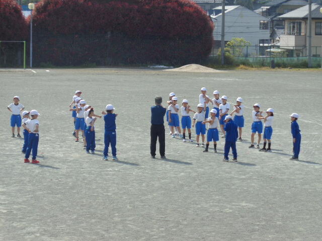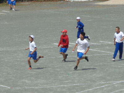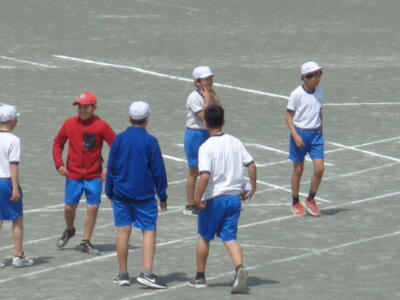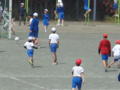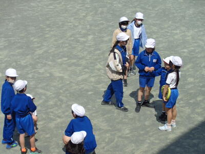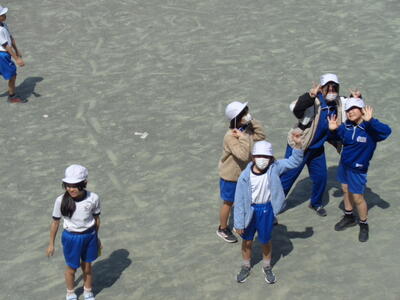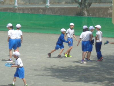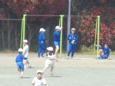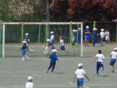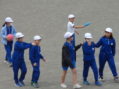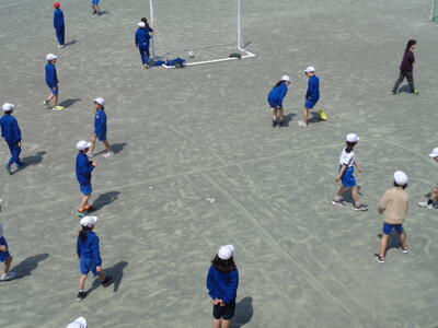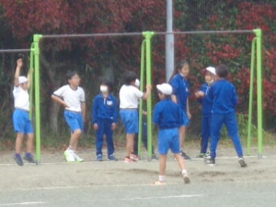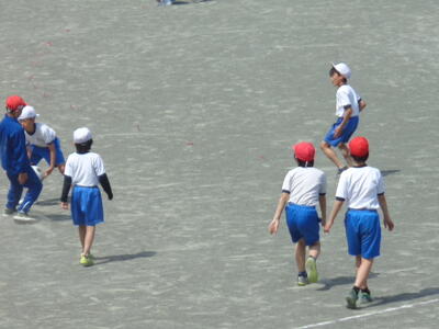 校庭で、2年生児童が元気に「合同体育」に取り組んでいました。
