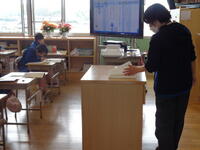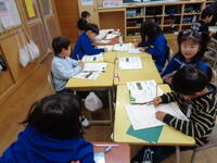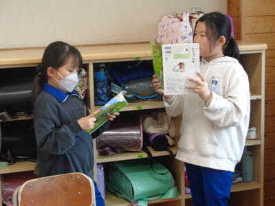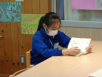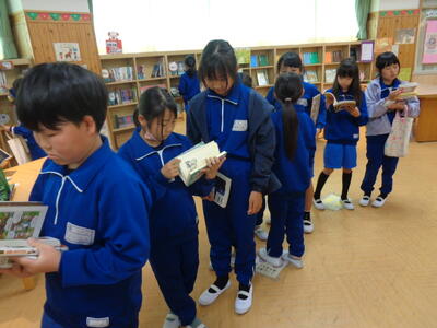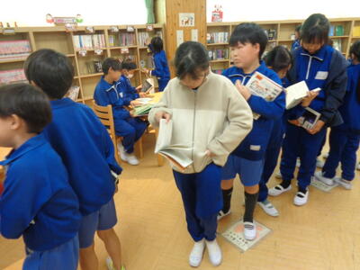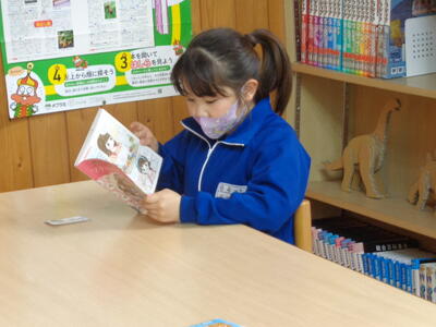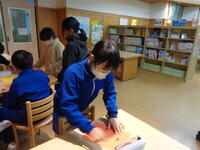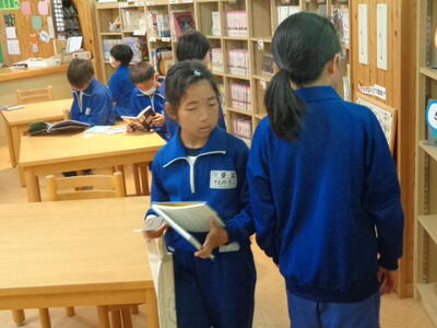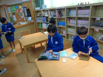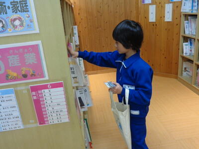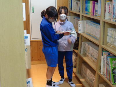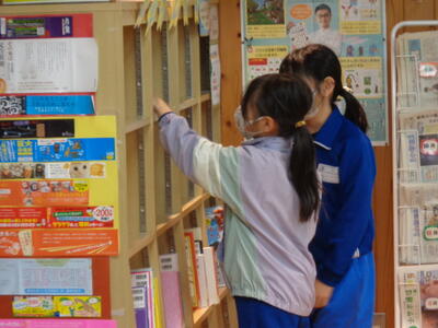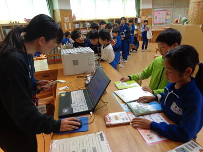 学校図書館において、本の貸し出しの仕方等について学んでいました。