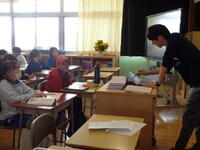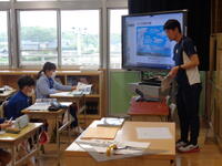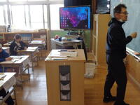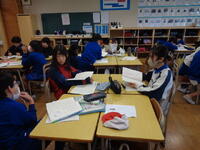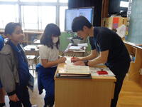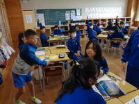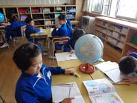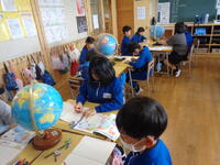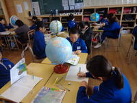 ★5年2組「社会」では、昨日の引き続き「地球儀」を使って学習に取り組んでいました。