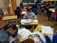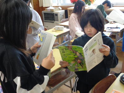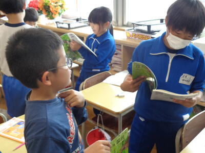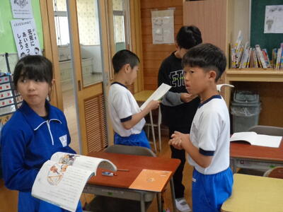★子供たちは2~4人に分かれて、お互いに向き合って「音読」の練習に取り組んでいました(#^.^#)。