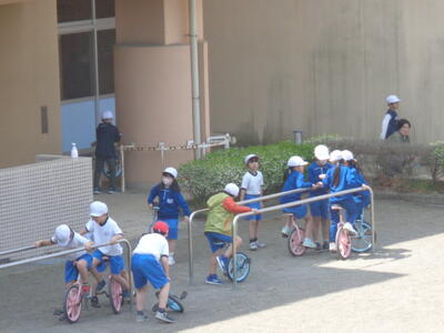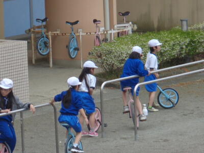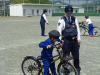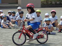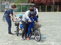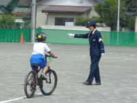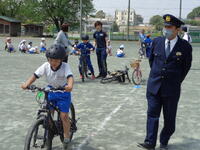 【3年生】自転車の乗り方の実技練習(①自転車の安全な発進 ②狭い道路から広い道路に出るときの右左折の仕方 ③横断歩道の渡り方等)