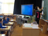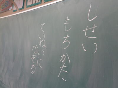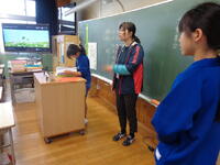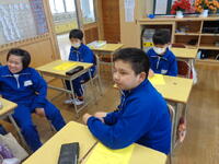 ★1年2組の教室では、「その場にふさわしい挨拶の仕方」について学んでいるようでした(#^.^#)。