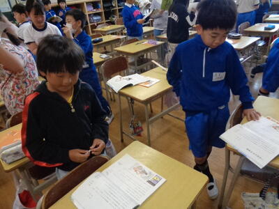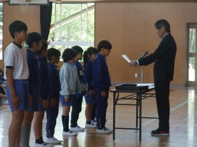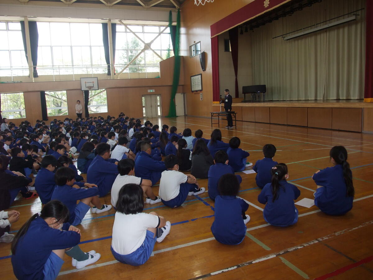 業間休みの時間に、「第1学期学級委員任命式(3~6年生)・校長講話」を行いました。