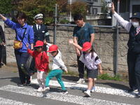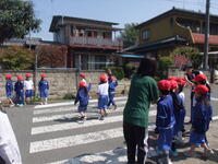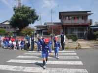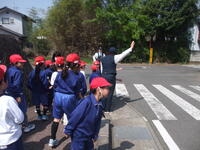 【1年生】安全な歩行・横断等の練習(① 一列歩行の大切さ ② 安全確認の位置と方法、横断の仕方等)
