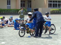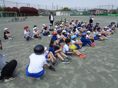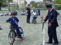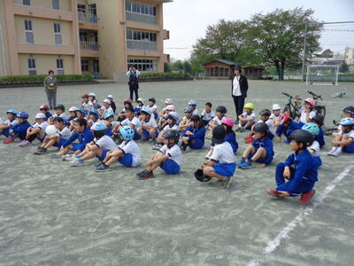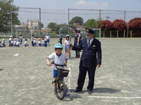 本日、久下田駐在所・さくら駐在所からお巡りさん、市から交通教育指導員さん、そして本校学区でお世話になっている交通指導員さんの皆様方を講師としてお招きし、以下の目標・内容のとおり、1・3年生による「交通安全教室」を行いました。